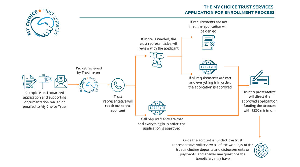 Establishing an account for the My Choice Trust can be completed in a few simple steps outlined below! Video tutorials and an in-depth flowchart of the process can be found at the bottom of this section.