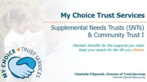 My Choice Trust Services participates in free forum trainings about trusts and our Community Trust I to educate people with disabilities, their families, and their providers on how to protect their financial assets and maintain benefit eligibility.